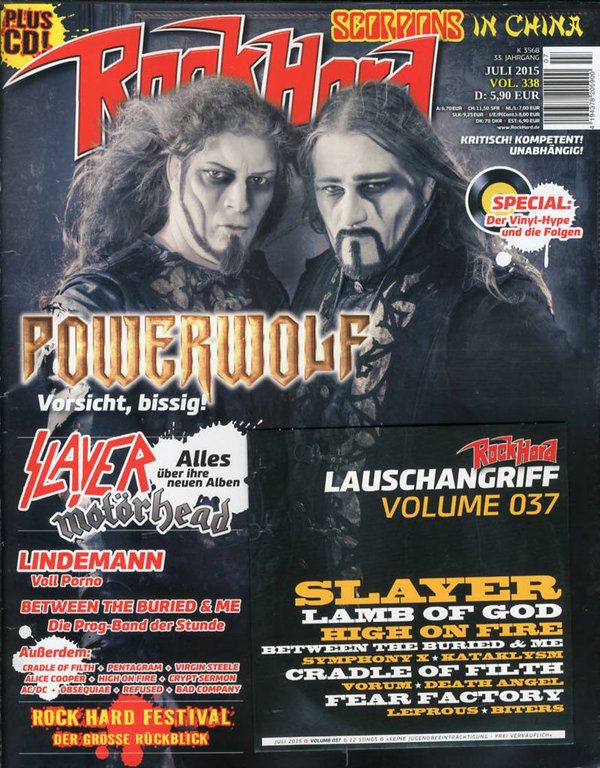 Rock Hard Magazine July 2015 Powerwolf, Scorpions, Slayer, Till Lindemann, Lamb Of God, High On Fire, Cradle Of Filth Inside - Немецкий журнал о тяжелой музыке.