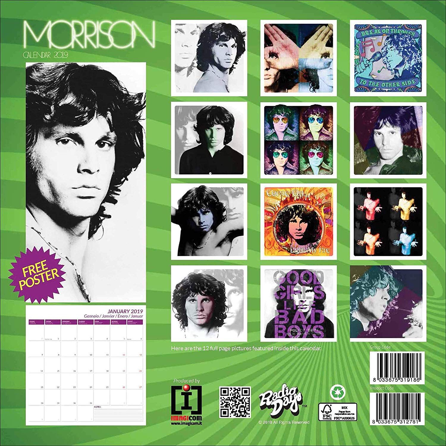 Jim Morrison Official Календарь 2019 - Настенный перекидной календарь на 2019 год. Размер календаря 30 см х 30 см (в закрытом виде), 30 см х 60 см (в открытом виде).