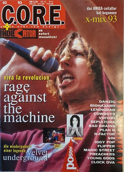 CORE Magazine March 1993 Rage Against The Mashine, Velvet Underground, Danzig, Biohazard, Sepultura, Iggy Pop, Manic Street Preachers Inside - Немецкий музыкальный журнал.