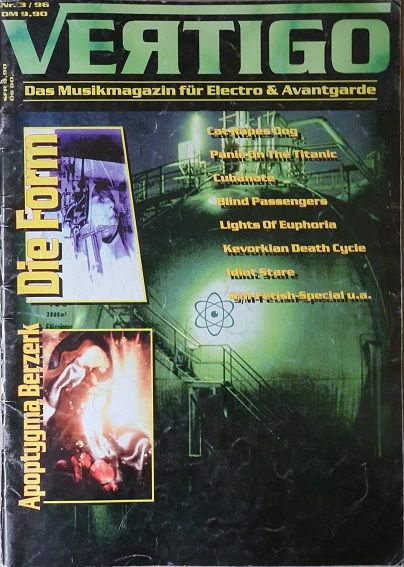 Vertigo Magazine March 1996 Die Form, Apoptygma Berzerk, Cubanate, Panic On The Titanic, Cat Rapes Dog, Idiot Stare Inside - Немецкий музыкальный журнал