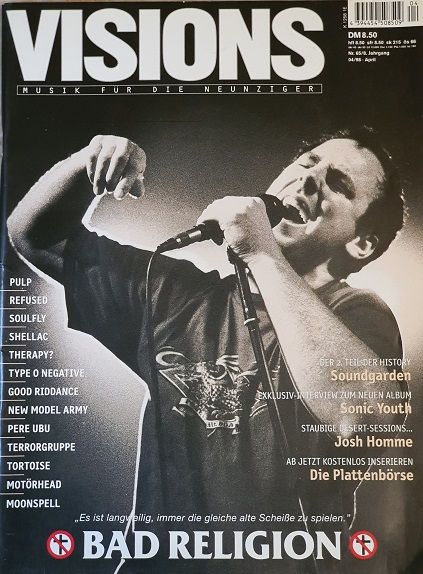Visions Magazine April 1998 Bad Religion, Soundgarden, Pulp, Refused, Soulfly, Shellac, Therapy, Type Of Negative, Good Riddance, Tortoise, Pere Ubu, Motorhead Inside - Немецкий музыкальный журнал.