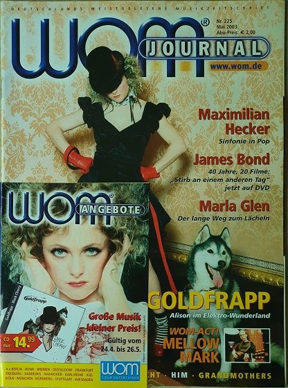 WOM Journal Magazine May 2003 Goldfrapp, Maximilian Hecker, Marla Glen, Melliw Mark, Macy Gray, Blur, Him, Granomothers, Peter Light Inside - Немецкий музыкальный журнал.