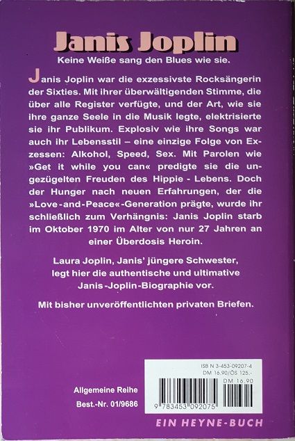 Janis Joplin, Laura Joplin, Из-во Heyne Bucher, January 1995, книга с иллюстрациями, мягкий переплет, немецкий язык, 382 страницы