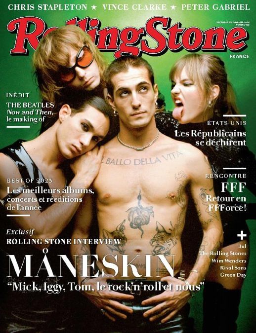 Rolling Stone France Magazine January 2024 Maneskin, The Beatles, Rolling Stone, Jul, Chris Stapleton, Vince Clarke, Peter Gabriel, Wim Wenders, Rival Sons, Green Day Inside - Французская версия культового американского журнала.
