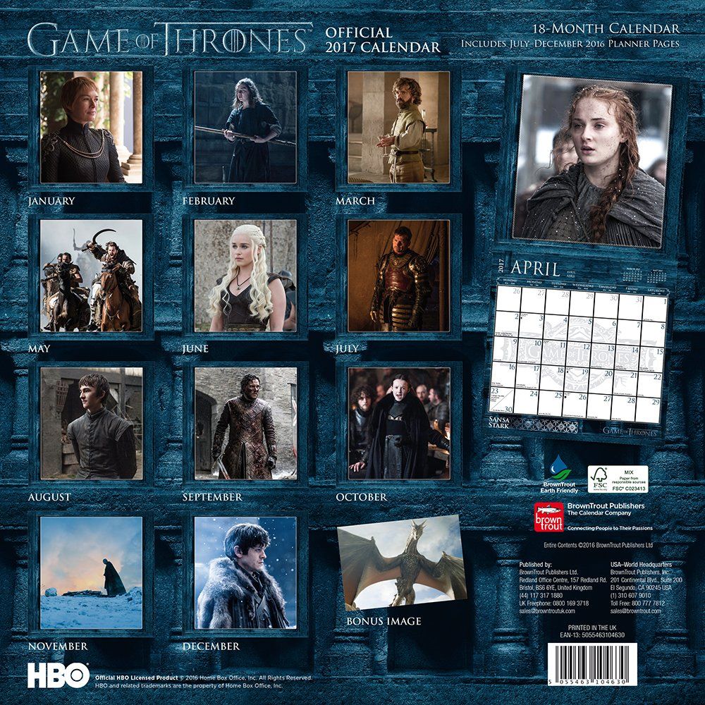 Game Of THrones Official Календарь 2017 - Настенный перекидной календарь на 2017 год. Размер календаря 30 см х 30 см (в закрытом виде), 30 см х 60 см (в открытом виде).